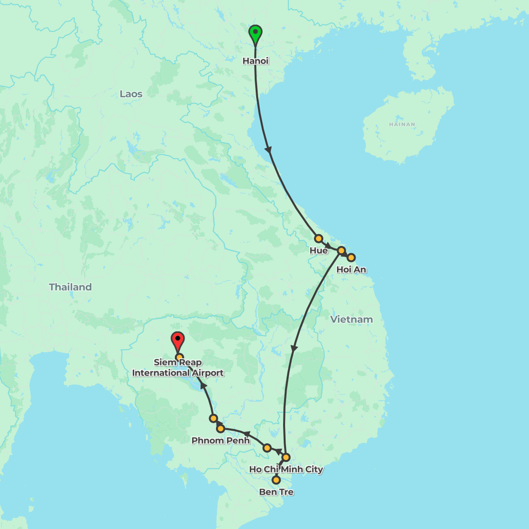 Discover Vietnam’s cities, coast and Halong Bay before flying to Cambodia to explore Siem Reap and Angkor Wat on a guided adventure with cherry-picked hotels and many inclusions.