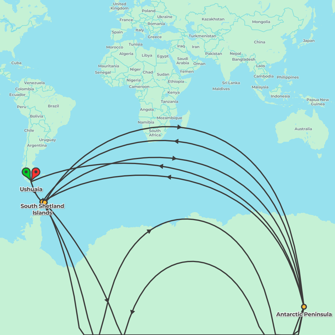 Journey from Ushuaia across the Drake Passage to explore the Antarctic Peninsula and attempt to cross the Antarctic Circle aboard a 128-passenger expedition ship with Zodiac landings.