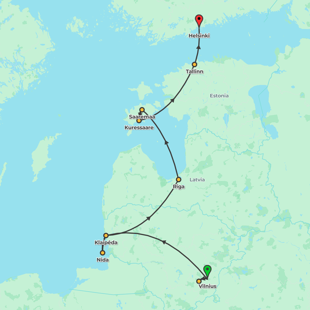 Explore Lithuania, Latvia, Estonia and Finland on a small-group journey from Vilnius to Helsinki, blending historic cities with a farm stay on Saaremaa and Baltic ferry crossings.