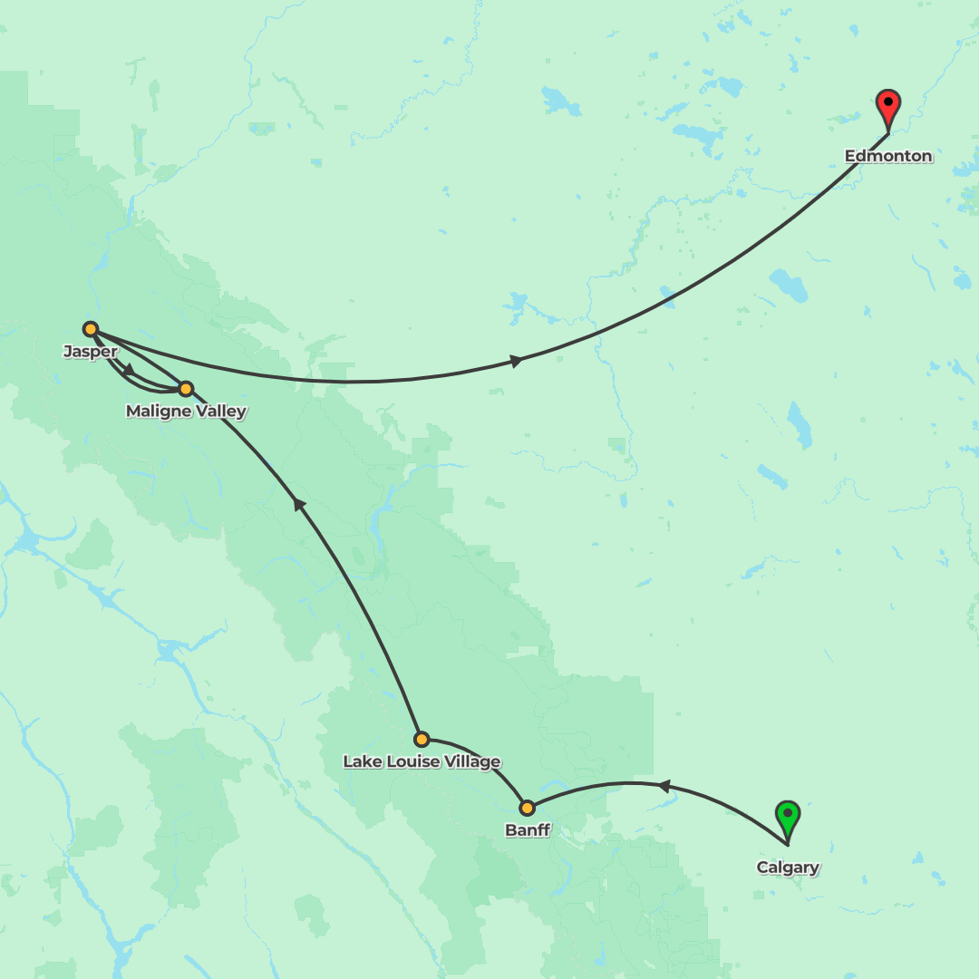 Discover the Canadian Rockies from Calgary to Banff via Jasper on a guided adventure along the Icefields Parkway with iconic lakes and flexible hikes.