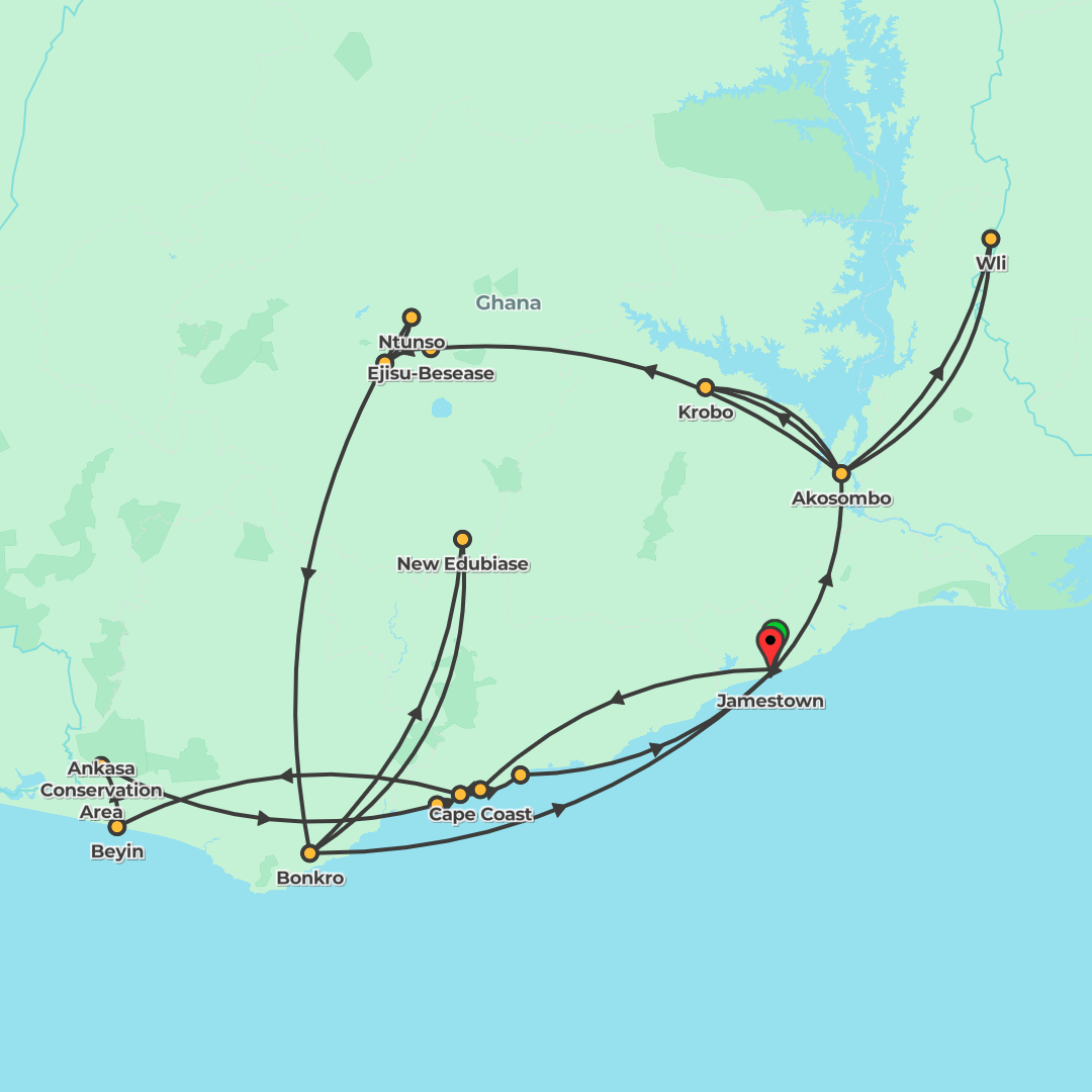 Explore Ghana on a small-group adventure from Accra to Kumasi, Bonkro, Elmina and Ankasa, blending iconic sights with village experiences, river and rainforest outings, and time on the coast.