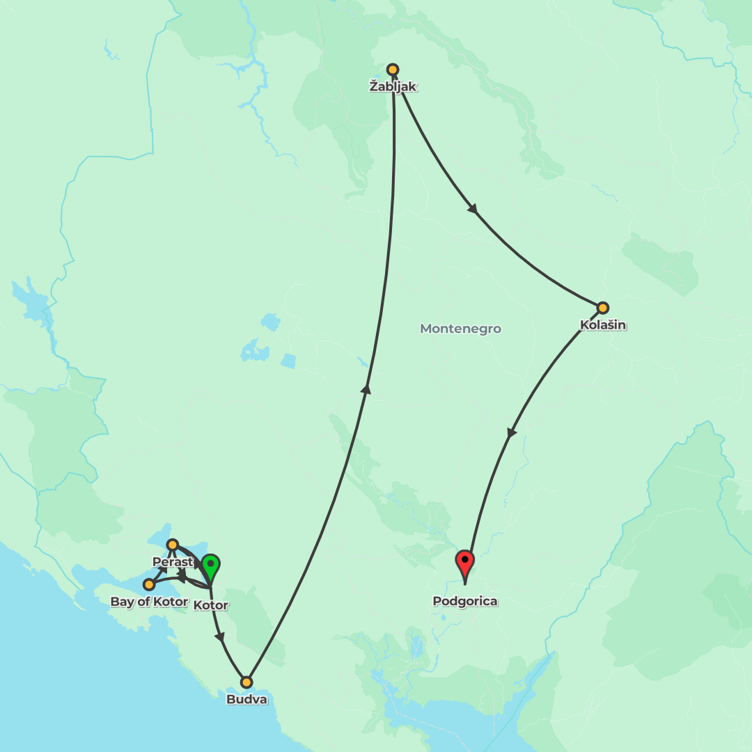 Explore Montenegro on a 6-day small‑group journey from Kotor to Podgorica, mixing coastal towns, a scenic bay boat ride, national park walks, and a 4x4 back‑country adventure.