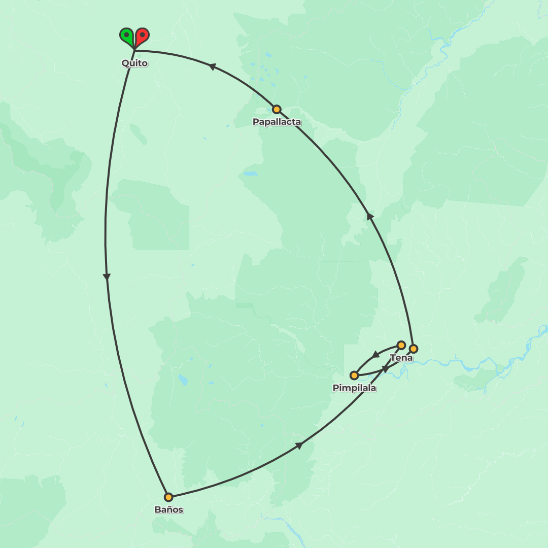 Explore Ecuador from Quito to Baños, the Amazon near Tena, and Papallacta on a small-group adventure featuring rustic jungle stays, cycling to Shandia, and soothing hot springs.