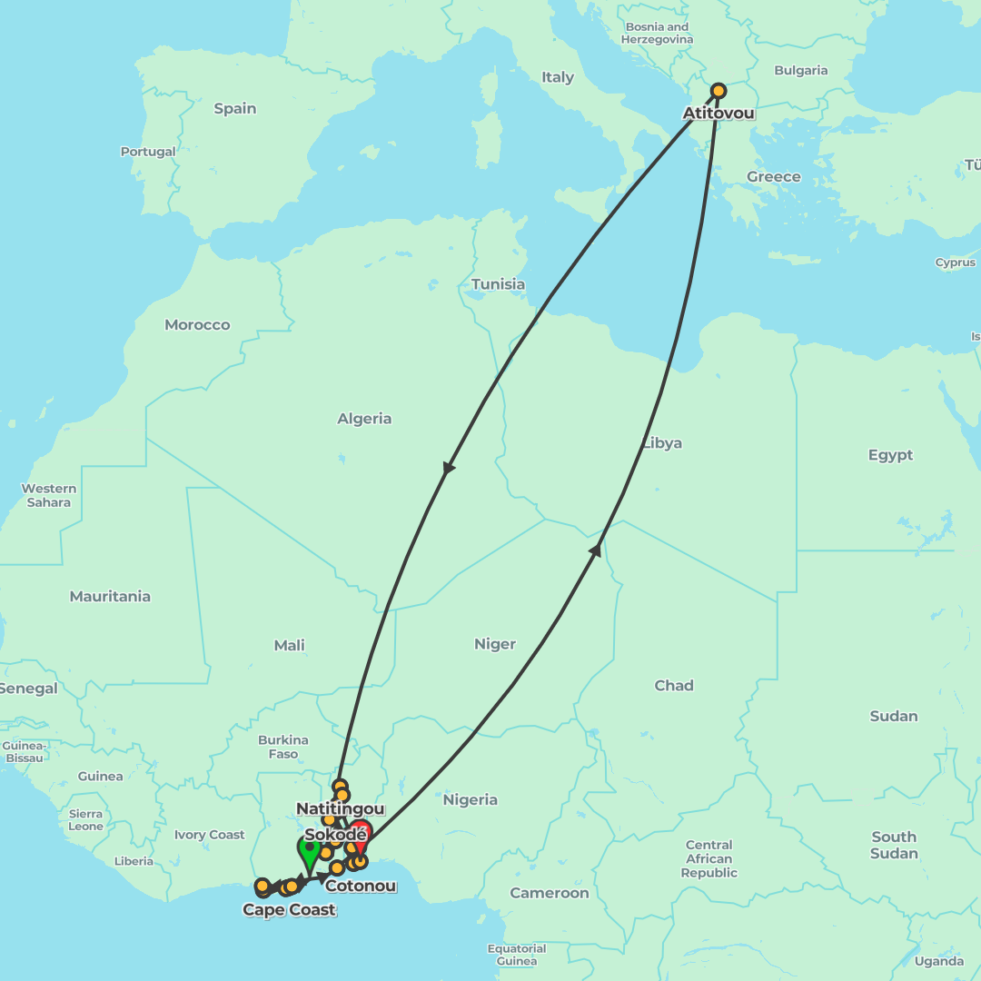 Traverse Ghana, Togo and Benin on a small-group journey from Accra to Cotonou, blending coastal history, rainforest outings, market walks and remarkable rituals.