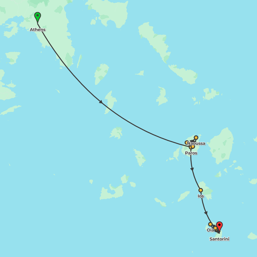 Island-hop from Athens to Paros, Ios and Santorini with a CEO-led small group, beach time, and a caldera walk, perfect for 18-to-Thirtysomethings.