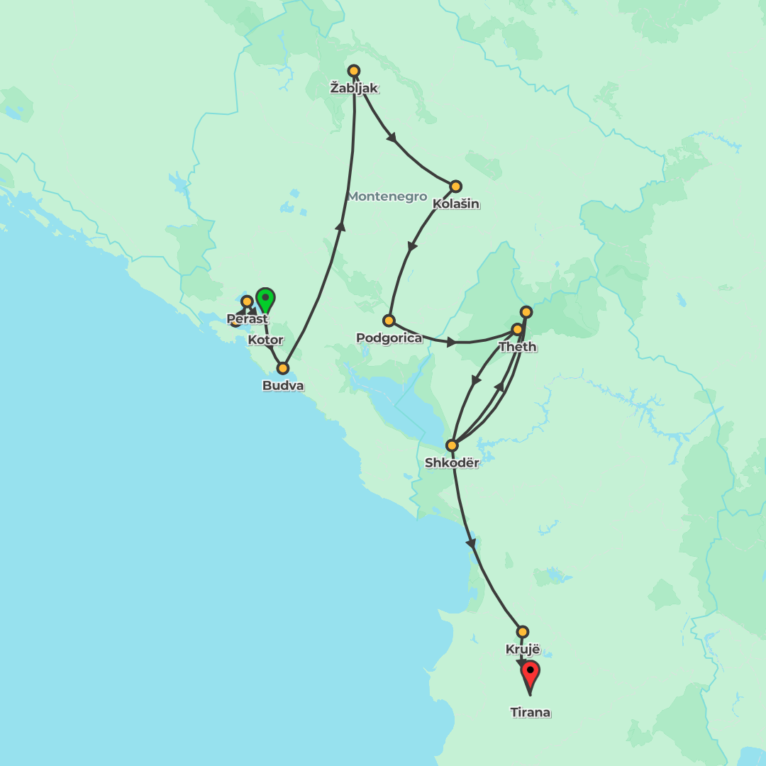 Journey from Kotor to Tirana on a small-group adventure combining coastal towns, national parks, boat rides, and guided walks across Montenegro and Albania.