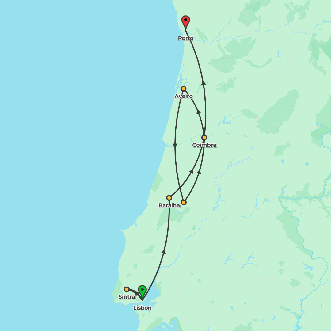 Discover Portugal on a 7-day journey from Lisbon to Porto and back, with cherry-picked hotels, guided city orientations, and time to explore medieval towns, sacred Fátima, and the Douro riverside at y