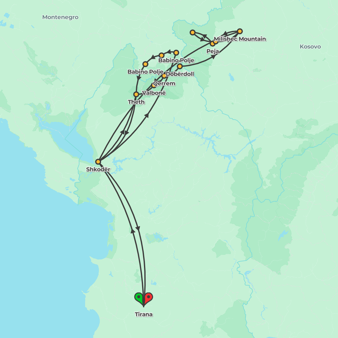 Discover Albania’s wild Valbona Valley on guided hikes, with a simple hut stay in Dobërdol, a Koman Lake ferry crossing, and cultural time in Tirana, Prizren, Kruje and Berat.