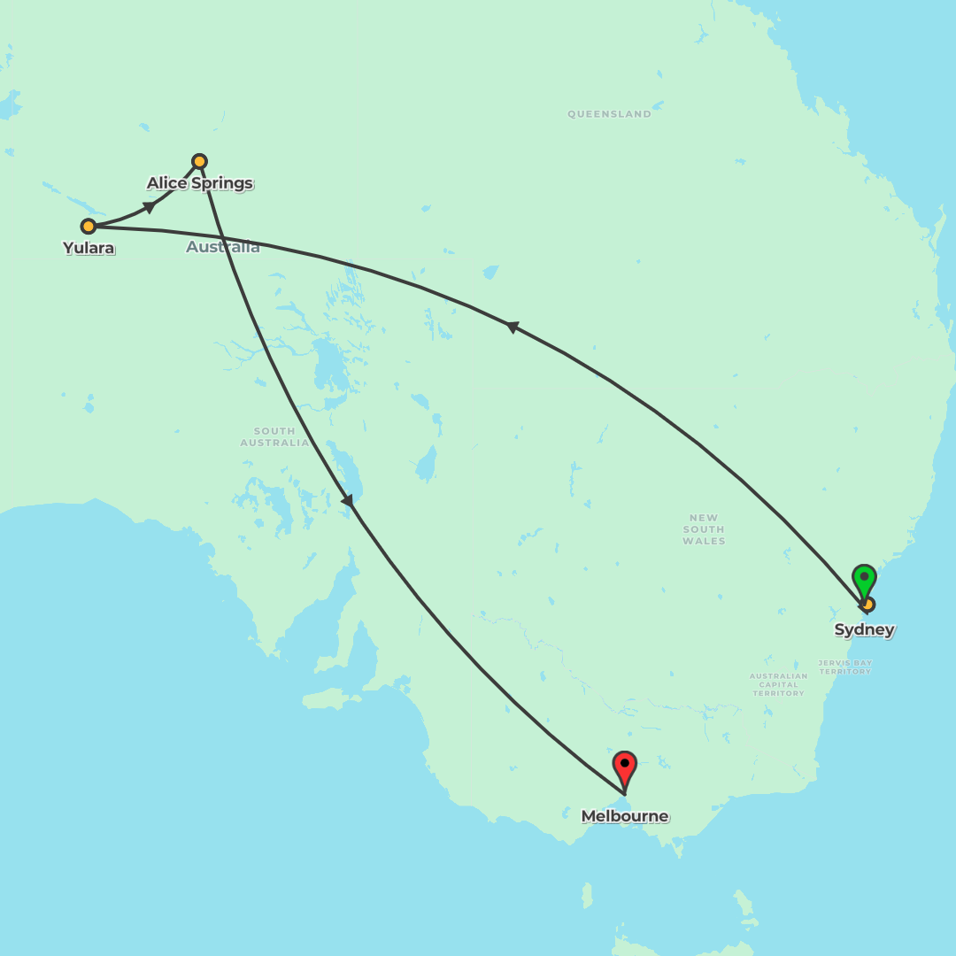 Explore Sydney, the Red Centre and Melbourne on a small-group adventure with internal flights, guided walks and ample free time.