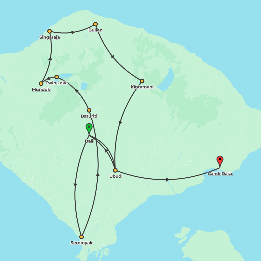 Discover Bali on a small-group journey from Seminyak to Candi Dasa featuring UNESCO rice terraces, temples, a community guesthouse stay in Bulian, waterfalls, and an optional Mt Batur sunrise.