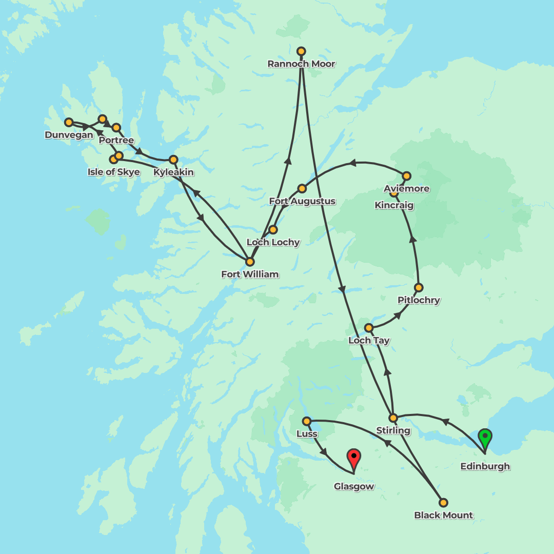 A winter week from Edinburgh to Glasgow taking in Stirling, St Andrews, Inverness, Loch Ness and more, with included experiences and time to explore.