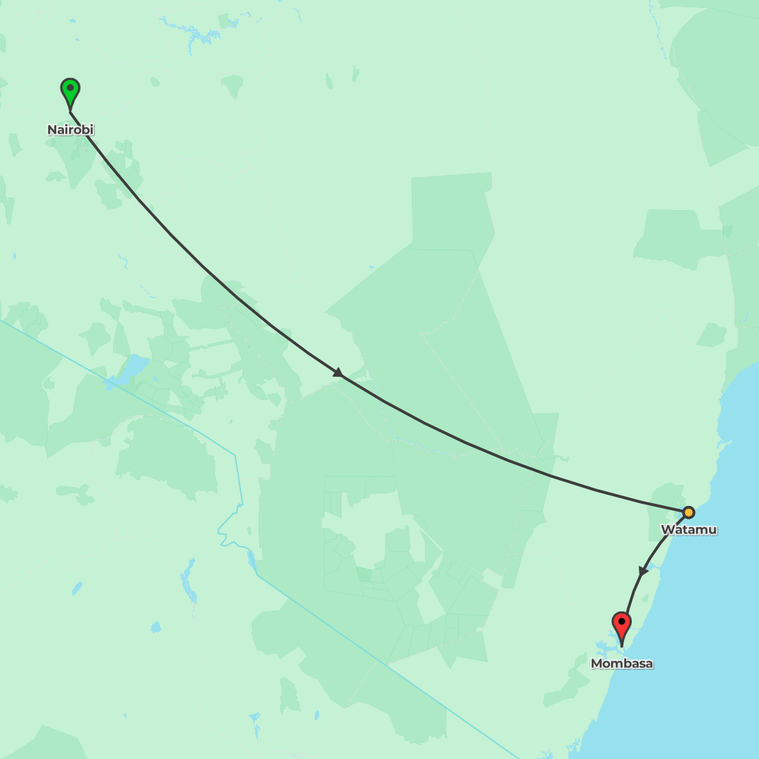 Track wildlife in the Masai Mara and Tsavo East, ride the historic rail to the coast, explore the Gedi ruins, and unwind in Watamu on this small-group Kenya adventure from Nairobi to Mombasa.