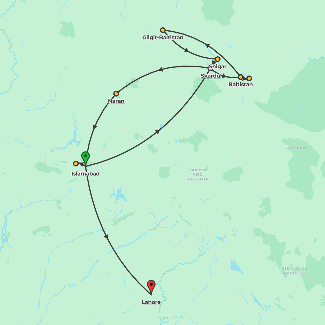 Journey across Pakistan’s Karakoram Highway from Islamabad to the high valleys of Skardu, Gilgit and Hunza, combining scenic drives with fort visits and walks to glacier viewpoints and Nanga Parbat Ba