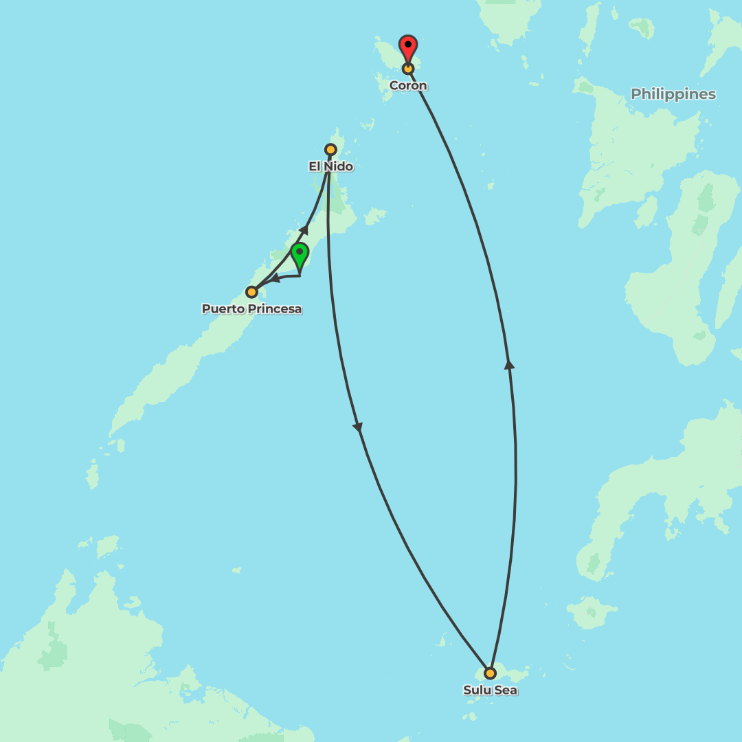 Island-hop from Puerto Princesa to Coron with underground rivers, snorkeling, and two nights of remote beach camping on a small-group adventure.