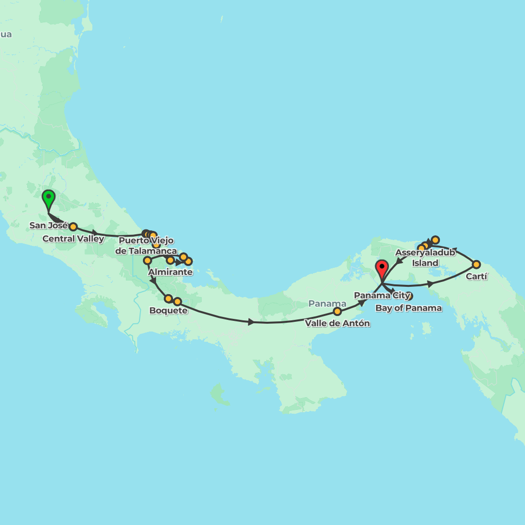 Cross from Costa Rica to Panama on a small-group 18-to-Thirtysomethings adventure from San José to Panama City, taking in Puerto Viejo, Bocas del Toro, Boquete and Valle de Antón, capped with a multi-