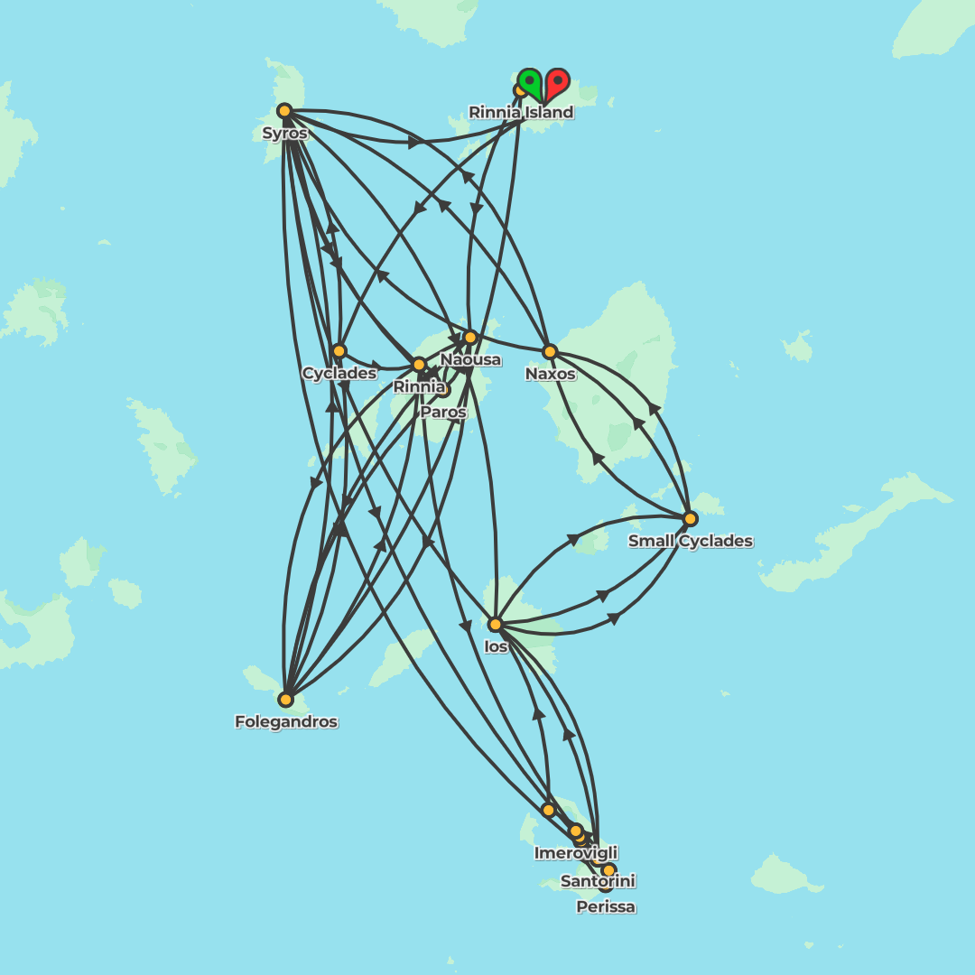 Island-hop from Athens to Mykonos and Santorini with guided tours, scenic ferries, unforgettable dinners and sunsets, plus convenient transfers throughout.