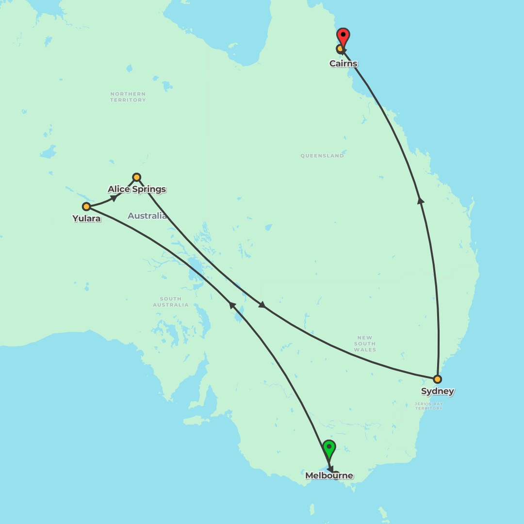 Discover Australia with a Solo‑ish small group from Melbourne to Cairns, taking in the Red Centre, Sydney and tropical north with internal flights, guided walks and time to explore.