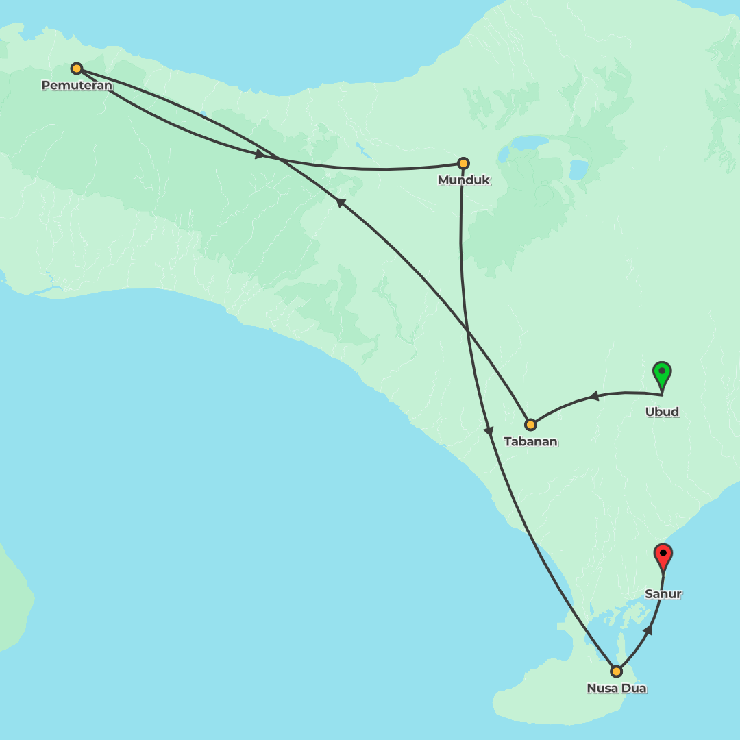 A small-group wellness escape across Bali from Ubud to Pemuteran and Nusa Dua, blending yoga, healing rituals, temple visits, gentle treks and snorkeling, ending in Sanur.