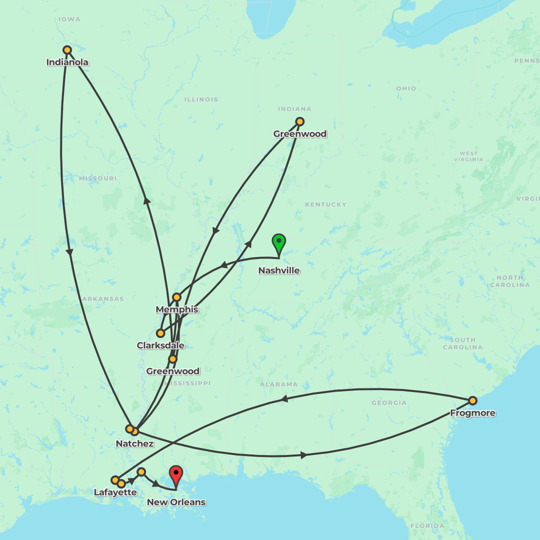 Experience the music, flavors and heritage of the American South on a journey from Nashville to New Orleans, featuring legendary studios, civil rights history and warm Southern hospitality.