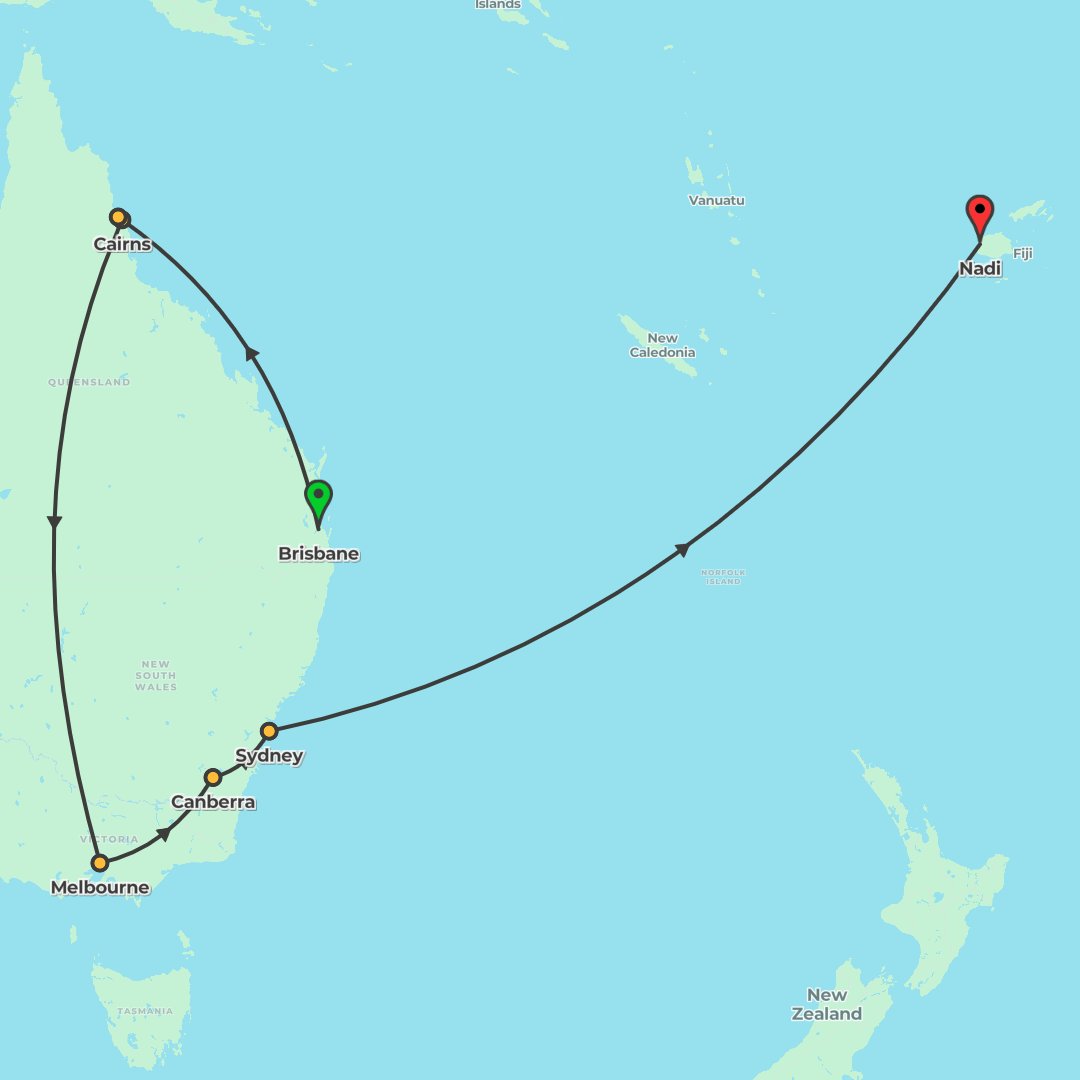 Experience Fiji’s beaches and Australia’s icons across Sydney, Cairns, and Melbourne with guided highlights like the Sydney Opera House, a harbour cruise, and a Great Barrier Reef catamaran, balanced