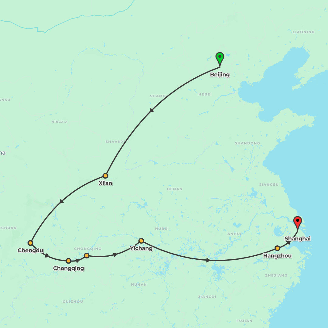 Experience China’s icons from Beijing to Shanghai with the Great Wall, Terracotta Warriors, Chengdu’s pandas, Hangzhou’s West Lake, and a 3-night Yangtze Three Gorges cruise.