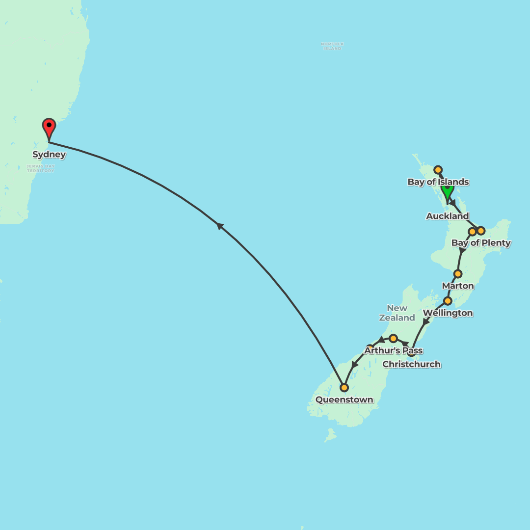 Explore New Zealand’s highlights from Auckland to Queenstown before a Sydney finale, combining first-class stays, scenic rail, iconic cruises, and cultural experiences with time to explore.