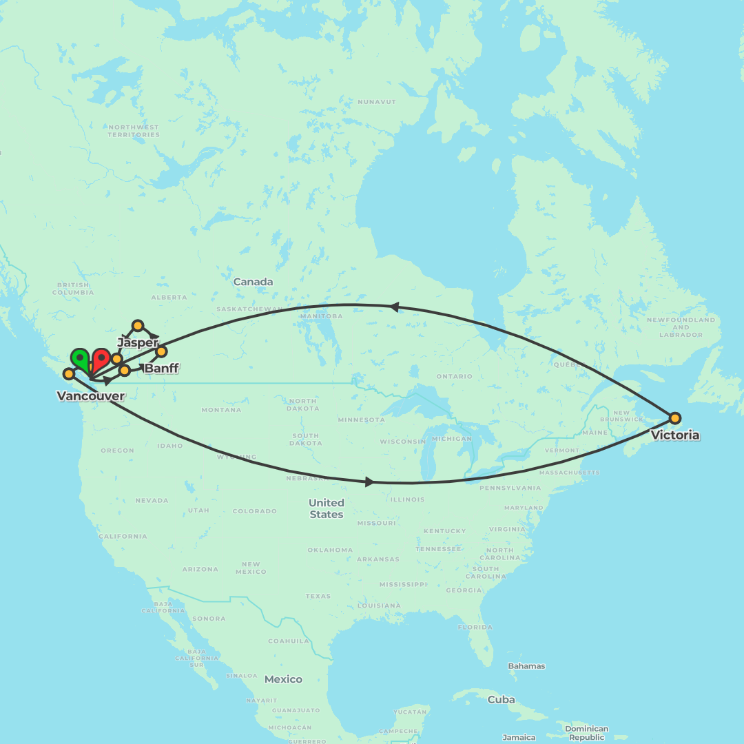 From Vancouver, trace a scenic loop to Victoria, Whistler, Jasper, Lake Louise, Banff and the Okanagan, blending guided highlights with ample free time and Choice Experiences across the Canadian Rocki