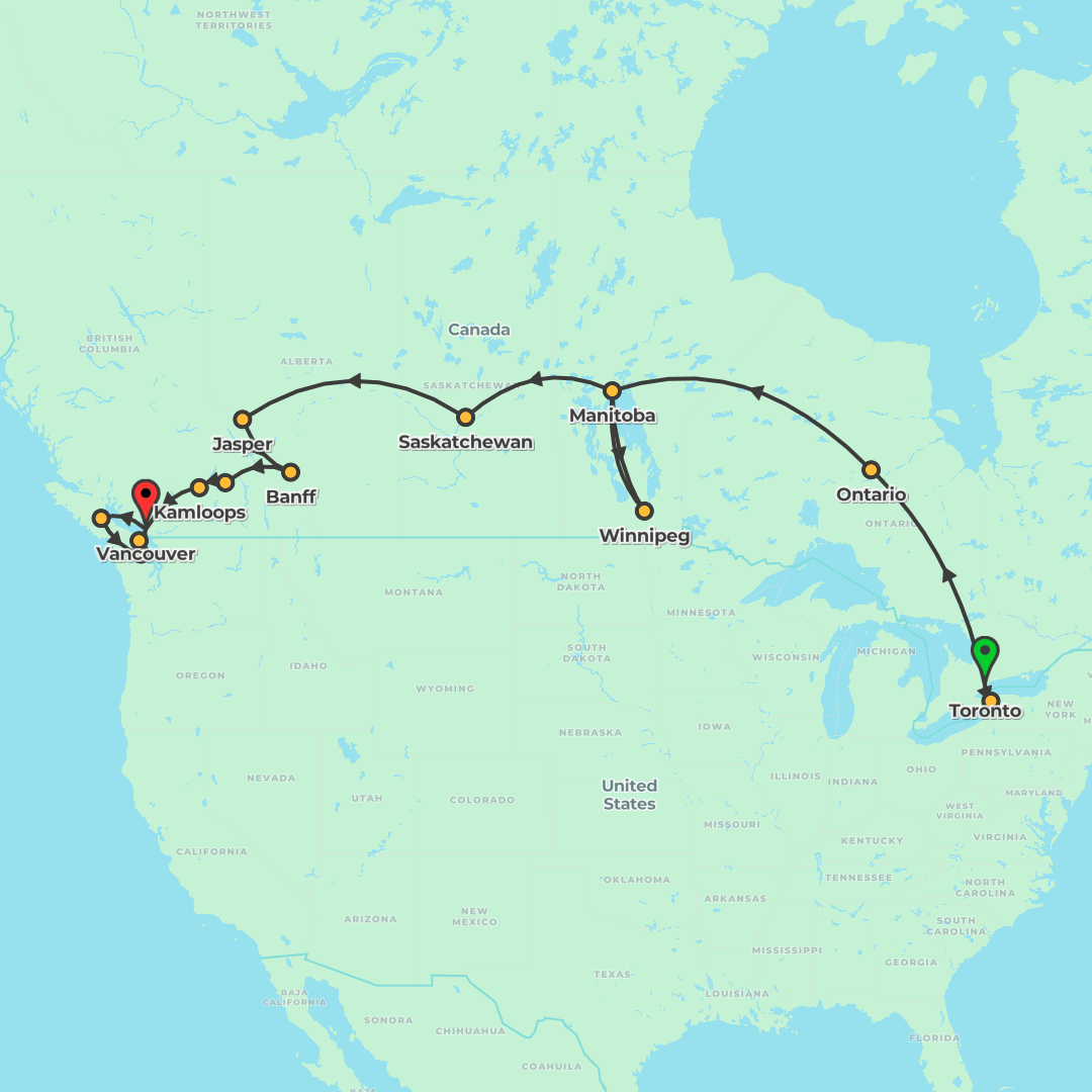 From Vancouver, trace a scenic loop to Victoria, Whistler, Jasper, Lake Louise, Banff and the Okanagan, blending guided highlights with ample free time and Choice Experiences across the Canadian Rocki