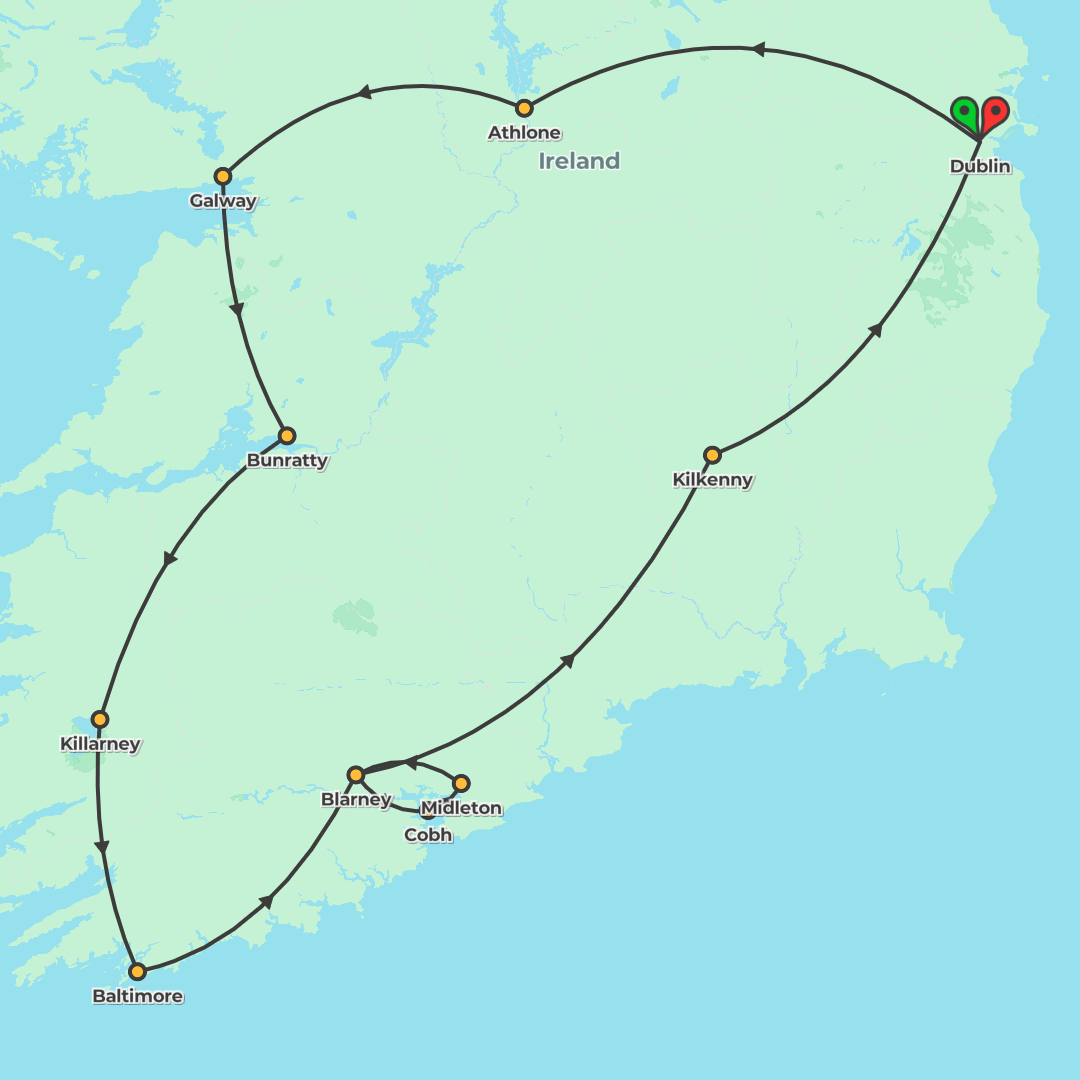 Experience a 10-day exploration of Ireland from Dublin to Waterford, Rosscarbery, Limerick, and Birr, featuring Cape Clear Island by ferry, the Ring of Kerry, the Cliffs of Moher, and time at leisure.