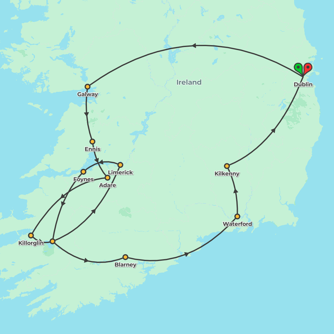Tick off Ireland’s highlights on a quick escorted journey from Dublin to Shannon, taking in Dublin’s treasures, Cork, the Dingle Peninsula and the Cliffs of Moher.