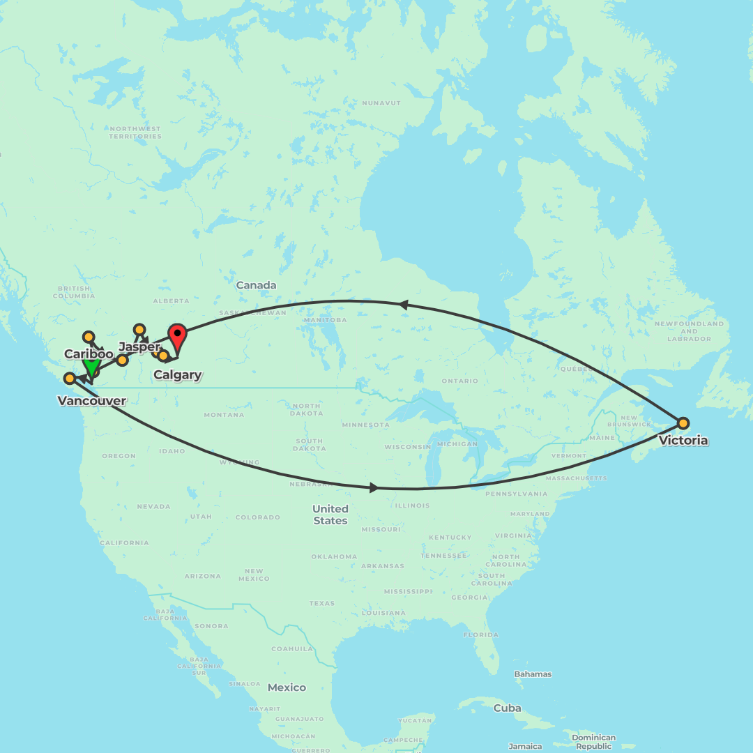 Discover the Canadian Rockies from Vancouver and Victoria to Whistler, Jasper, Banff and Calgary, featuring BC Ferries crossings, a Maligne Lake cruise, Columbia Icefield adventure, Banff Gondola view
