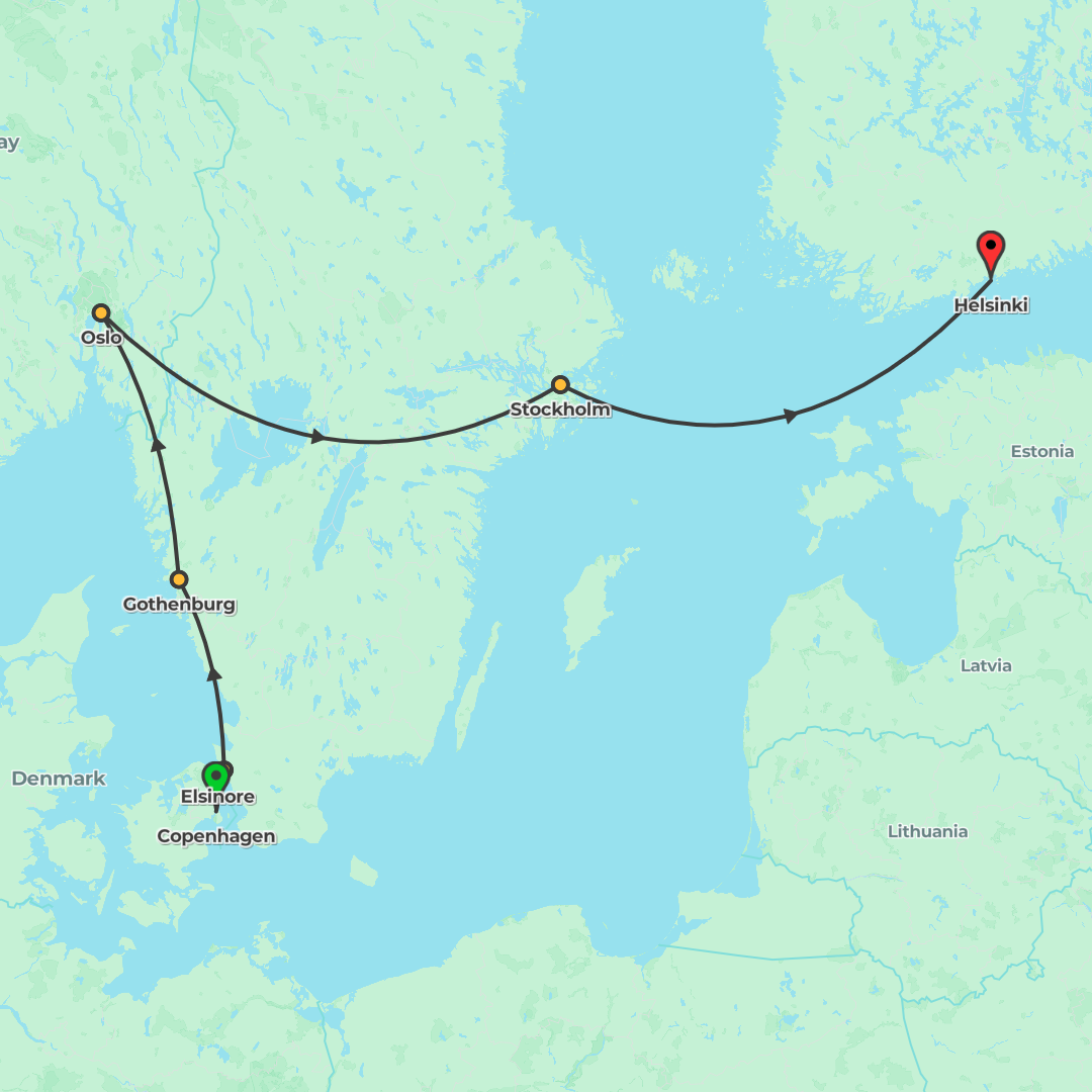 Experience the best of Norway, Sweden and Finland on a guided adventure from Oslo to Helsinki, blending scenic rail journeys with memorable boat and ferry explorations.