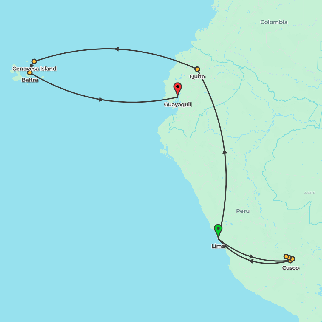 Discover Peru’s Inca heartlands—from Lima and the Sacred Valley to Machu Picchu and Lake Titicaca—then continue to Quito for a Galápagos cruise filled with wildlife encounters.