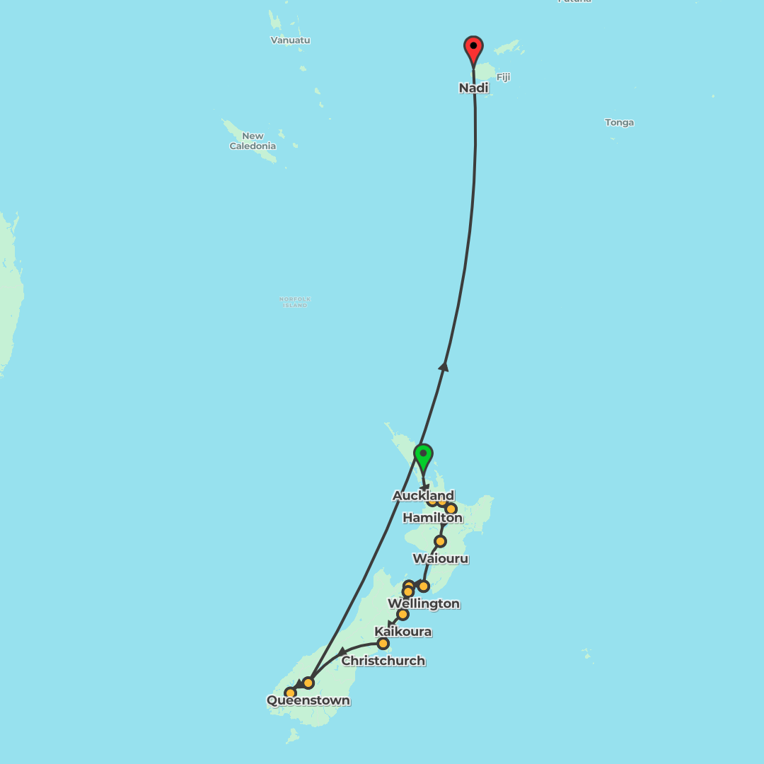 Pair three nights in Fiji with a guided New Zealand journey from Auckland to Queenstown, taking in Rotorua's geothermal sights, Wellington's highlights, a Cook Strait ferry crossing, and a Milford Sou
