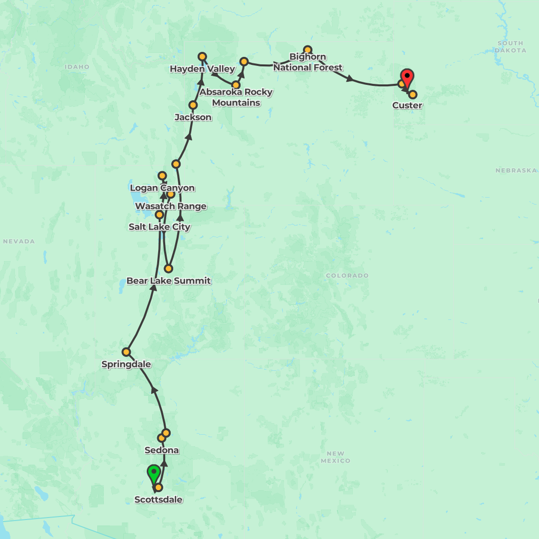 Discover America's iconic Southwest and Rockies on a 15-day classic group journey from Scottsdale to Rapid City, taking in Grand Canyon, Monument Valley, Zion, Grand Teton, Yellowstone and the Black H
