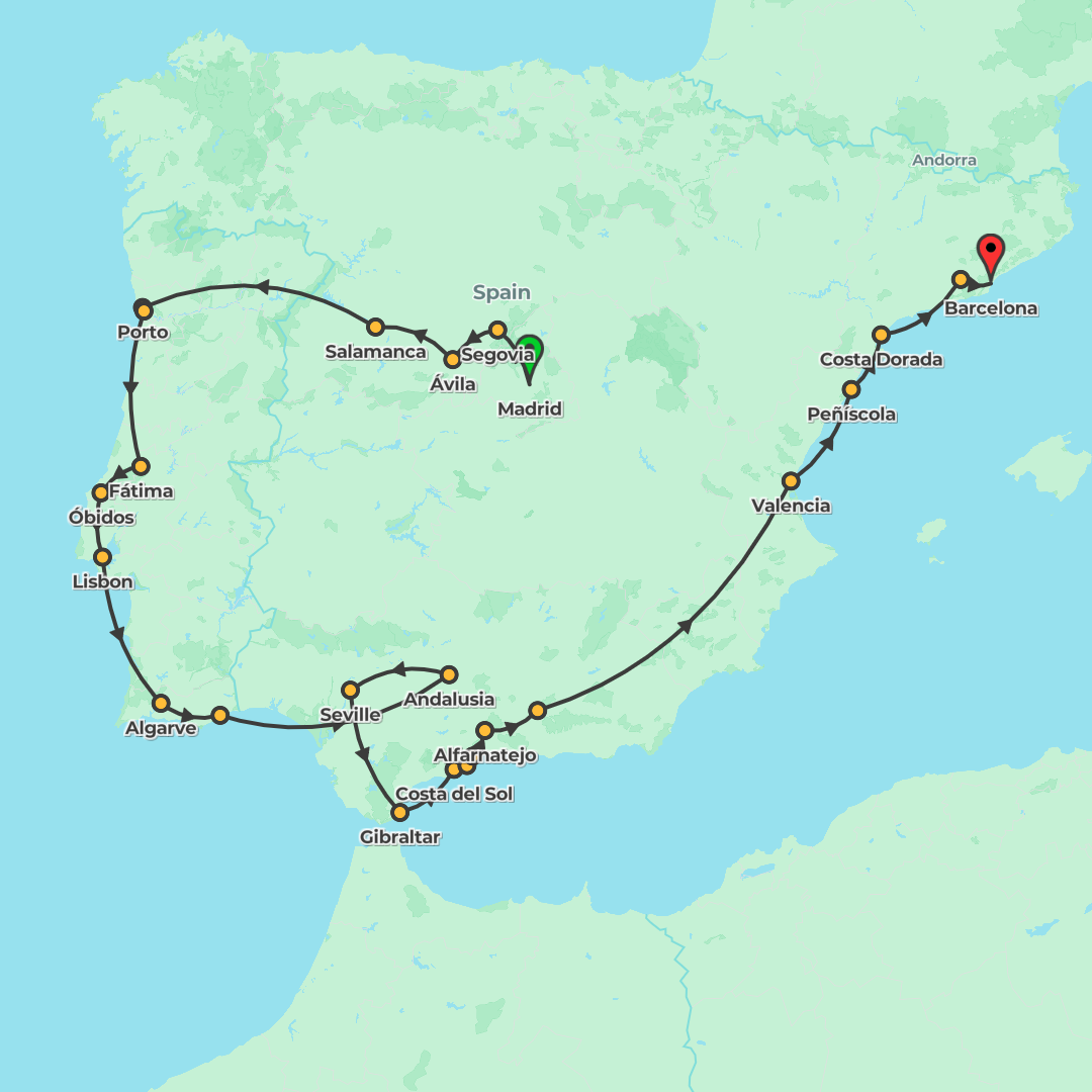 Discover Spain and Portugal on a 15-day classic group journey from Madrid to Barcelona, blending expert-led city sightseeing with memorable culinary experiences and relaxed free time.