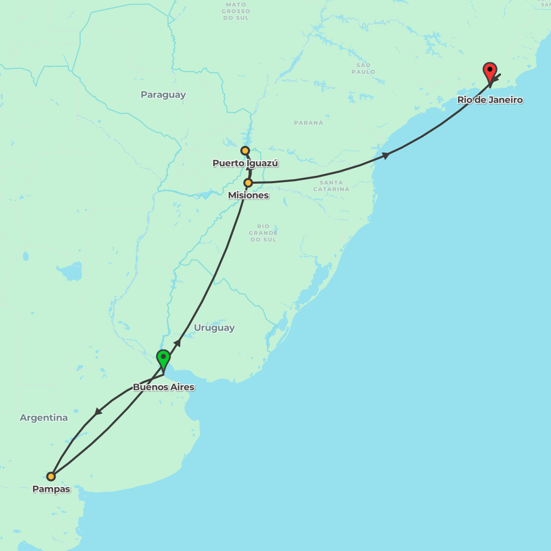 Explore Rio de Janeiro, Iguassu Falls and Buenos Aires with guided sightseeing, cross-border visits to both sides of the falls, and flights connecting each destination.