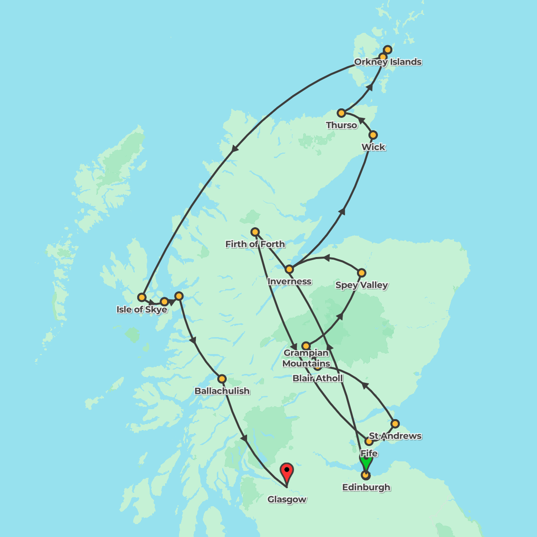 Explore Scotland from Edinburgh to Glasgow, taking in the Isle of Skye and the Orkney Islands with guided highlights, relaxed starts and authentic dining on a small-group journey.