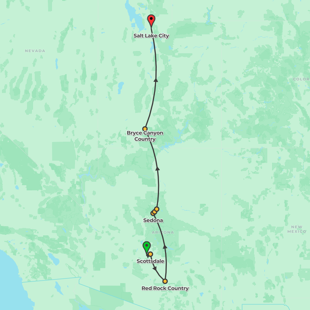 Discover the Southwest’s iconic landscapes on a one‑week guided journey from Phoenix to Salt Lake City, taking in Sedona, the Grand Canyon, Monument Valley, Lake Powell, Bryce Canyon and Zion with mea
