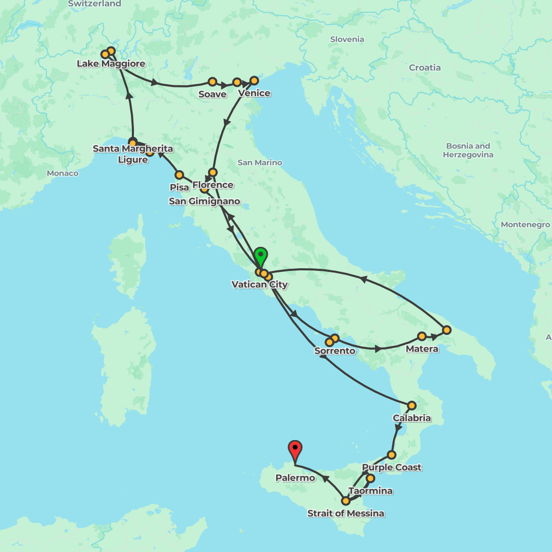 A 15-day winter adventure through Italy's icons including Rome, Florence, Cinque Terre, Milan, Venice, Naples and the Amalfi Coast, blending guided highlights, free time and memorable food experiences