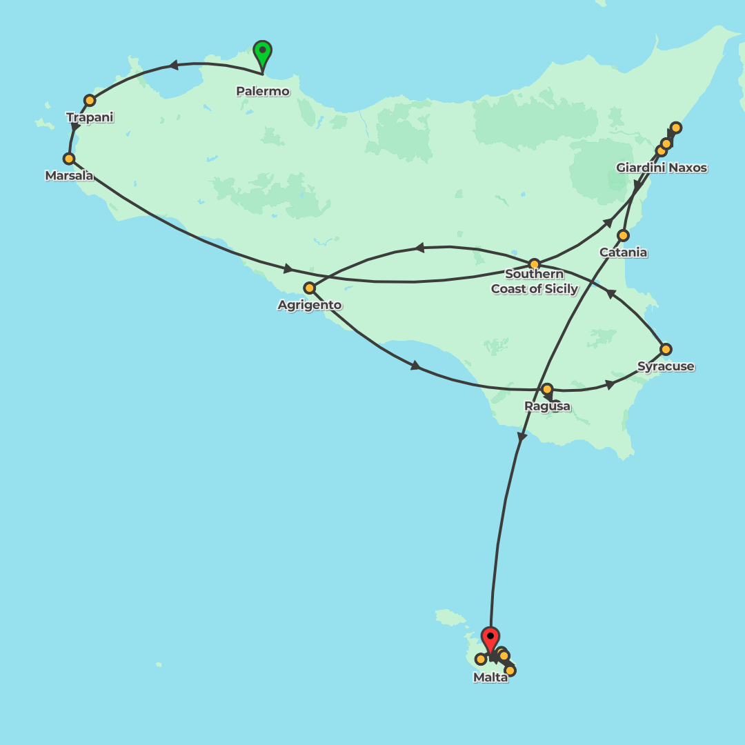 Experience a 14‑day journey across Sicily’s highlights with Local Experts, then fly to Malta for relaxed exploration from Sliema, including Valletta and Mdina.