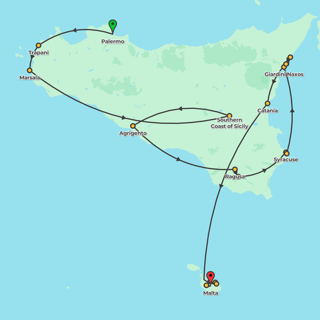 Experience a 14‑day journey across Sicily’s highlights with Local Experts, then fly to Malta for relaxed exploration from Sliema, including Valletta and Mdina.