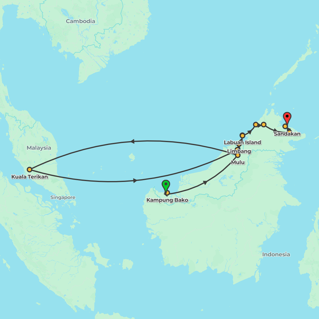 Experience Borneo’s highlights on a journey from Kuching to Sandakan, blending wildlife encounters, cave exploration, jungle trekking, river cruises and a memorable Turtle Island stay with a Mt Kinaba