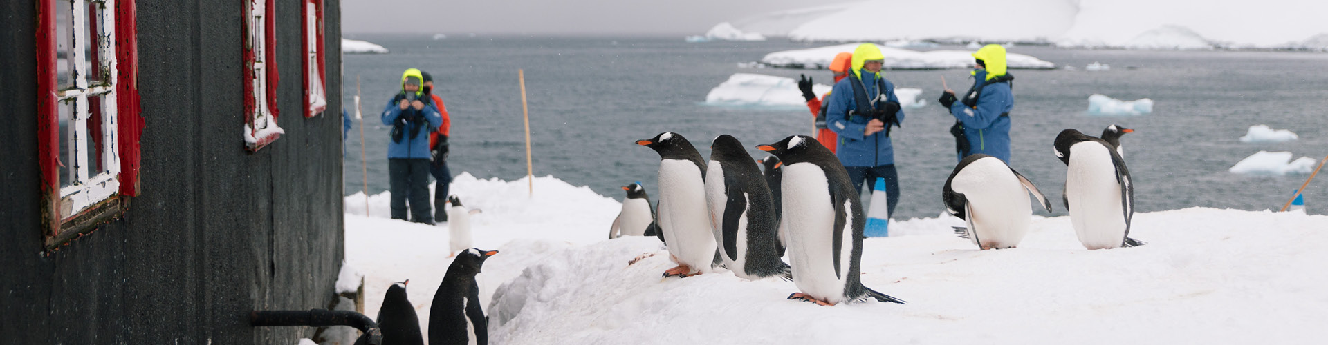 Journey from Ushuaia across the Drake Passage to explore the Antarctic Peninsula and attempt to cross the Antarctic Circle aboard a 128-passenger expedition ship with Zodiac landings.