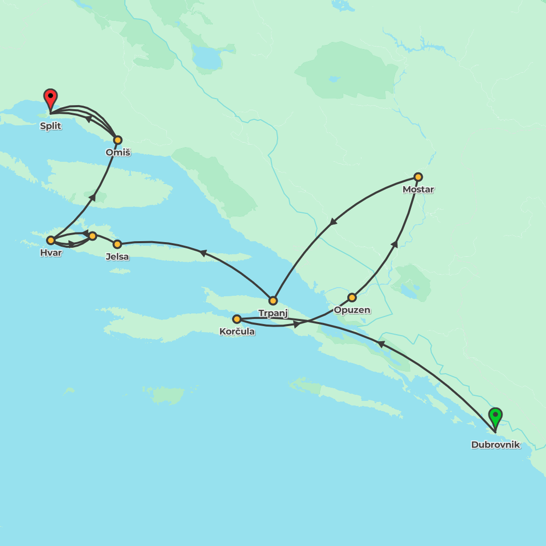 Sail from Split to Dubrovnik over 8 days on Croatia’s Dalmatian coast with island orientation walks, swim breaks, and a guided Dubrovnik city tour.