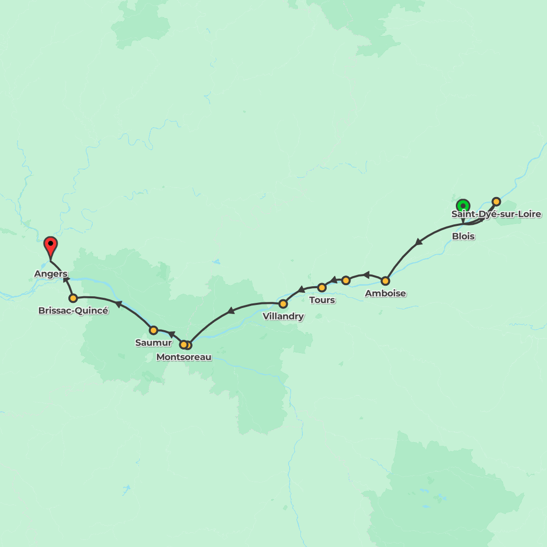 Cycle the Loire Valley from Blois to Angers, discovering riverside paths, grand chateaux and vineyards, with an included small-boat cruise along the Loire.