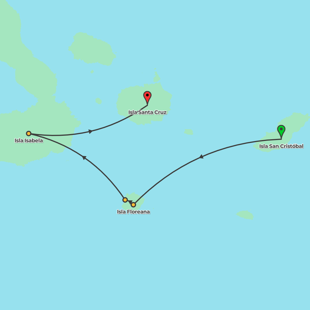 Hop between Santa Cruz, Floreana, and Isabela on a land-based Galápagos adventure with speedboat transfers, a community guesthouse stay, and wildlife walks led by a certified naturalist guide.