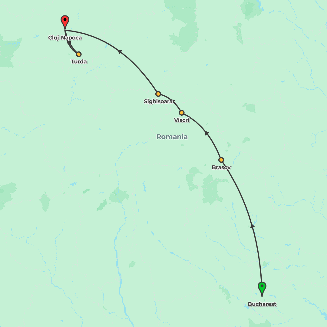 Celebrate Halloween on a northbound journey through Transylvania from Bucharest to Cluj-Napoca, combining medieval towns, Bran Castle, a spooky party, the Turda Salt Mines and the haunted Hoia Forest.