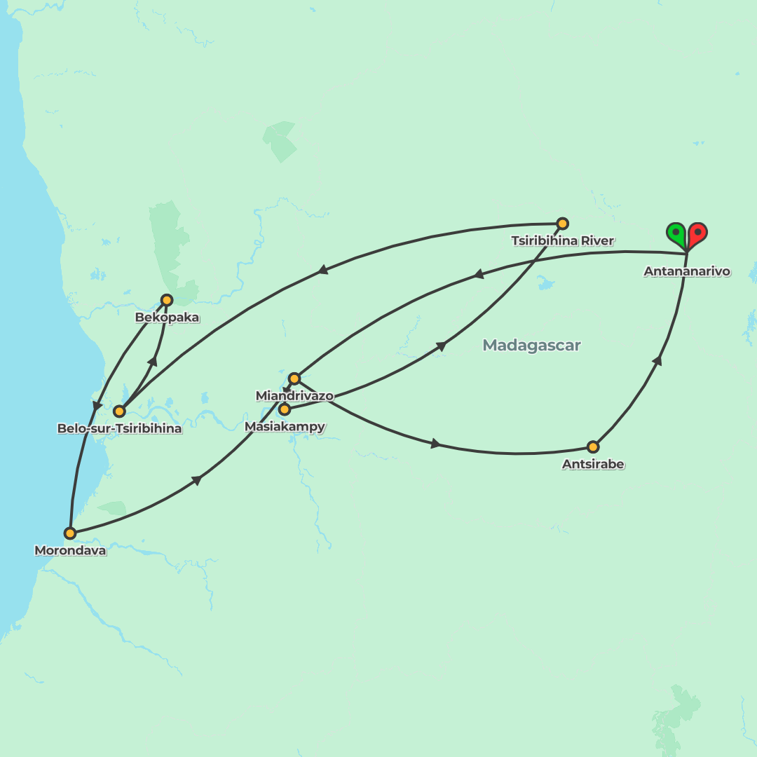 Experience Madagascar’s remarkable wildlife and landscapes on a guided journey from Antananarivo through baobab avenues, tsingy stone forests, national parks, rivers and villages.