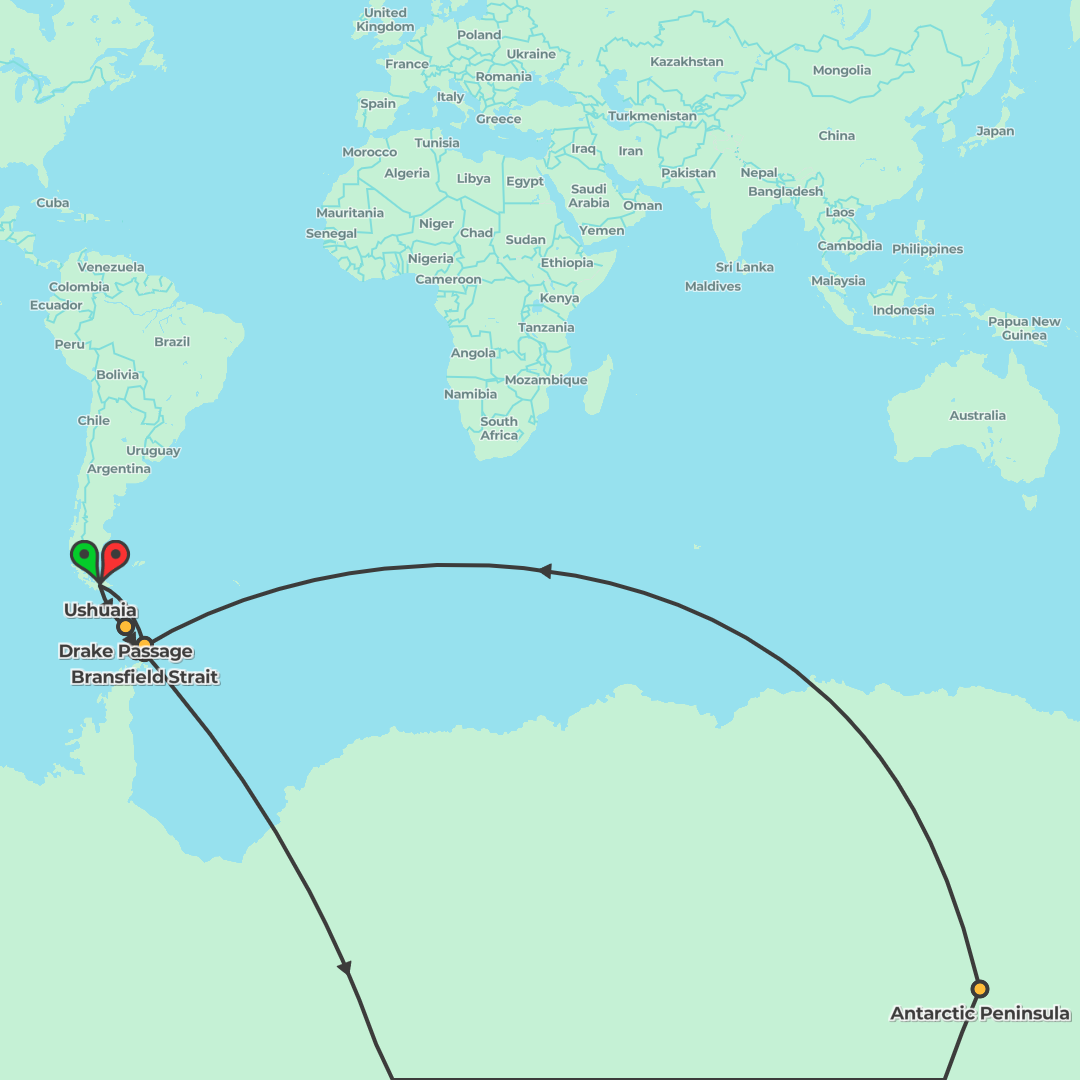 Fly over the Drake Passage to begin an Antarctic Peninsula adventure before sailing north to Ushuaia, encountering wildlife and expert-led discoveries along the way.